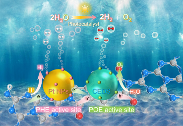 贵大新闻网讯(材料与冶金学院)近日,德赢官网材料与冶金学院特聘教授袁继理领衔的光/电催化研究小组,在光催化整体水分解的研究中取得了重要进展,成果以“Engineering Conjugated Tetrone-Imide-Linked Tubular Carbon Nitride for Boosting Kinetics of Overall Water Splitting”为题发表在国际顶级期刊Advanced Functional Materials (影响因子为19.0,中科院SCI一区TOP期刊)上。利用光催化全解水为H2和O2为可持续和绿色H2生产提供了一条有前景的途径。然而,克服快速电荷动力学和缓慢氧化还原反应动力学之间的固有不相容性仍然是一个巨大的挑战,这限制了光催化全解水的效率。鉴于此,研究团队设计了一种串联加速热电子转移策略,来调谐载流子动力学与表面反应动力学的匹配度。通过在大π共轭中空管状g-C3N4框架上嵌入共轭缺电子结构(CEDS),来诱导Pt纳米颗粒(Pt NPs)定向锚定。实验观察表明,CEDS和Pt NPs协同加速了光生电子的快速分离和转移,从而延长了光生空
