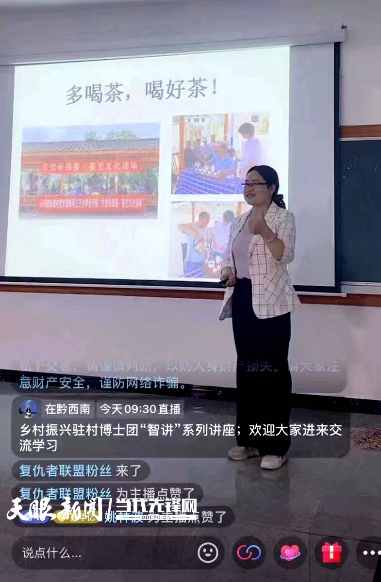 【开栏的话】“产业兴旺、生态宜居、乡风文明、治理有效、生活富裕”,这是党的十九大提出实施乡村振兴战略的总要求。争做发展“干将”、改革“闯将”、攻坚“猛将”,这是贵州省黔西南州围绕推动高质量发展要求,对广大党员干部发出的“动员令”。2021年以来,黔西南州紧扣乡村振兴主题,坚持党建引领、示范带动、分类推进、精准施治,在坚定“走城乡融合发展之路”“走共同富裕之路”“走质量兴农之路”“走乡村绿色发展之路”“走乡村文化兴盛之路”“走乡村善治之路”“走中国特色减贫之路”的进程中,广大党员干部和群众正在乡村振兴的舞台上发光发热,奉献智慧和力量。10月1日起,我们聚焦黔西南州7个省级、32个州级特色田园乡村·乡村振兴集成示范试点,选取104名村支书、驻村第一书记、帮扶干部推出系列融媒体报道《104员干将》,一起去看他们扎实推进乡村振兴的生动实践和经验成效。本期请看——贞丰县长田镇长田村驻村第一书记庄菊花:将“茶讲堂”开到乡野田间“我时刻在想,在我们团队中我年纪是最小的,又是一个女生,且从未有过从事管理岗位的工作经验,能做什么呢?”在贞丰县长田镇长田村,刚刚结束走访的庄菊花回忆着刚来时内心的担忧。20