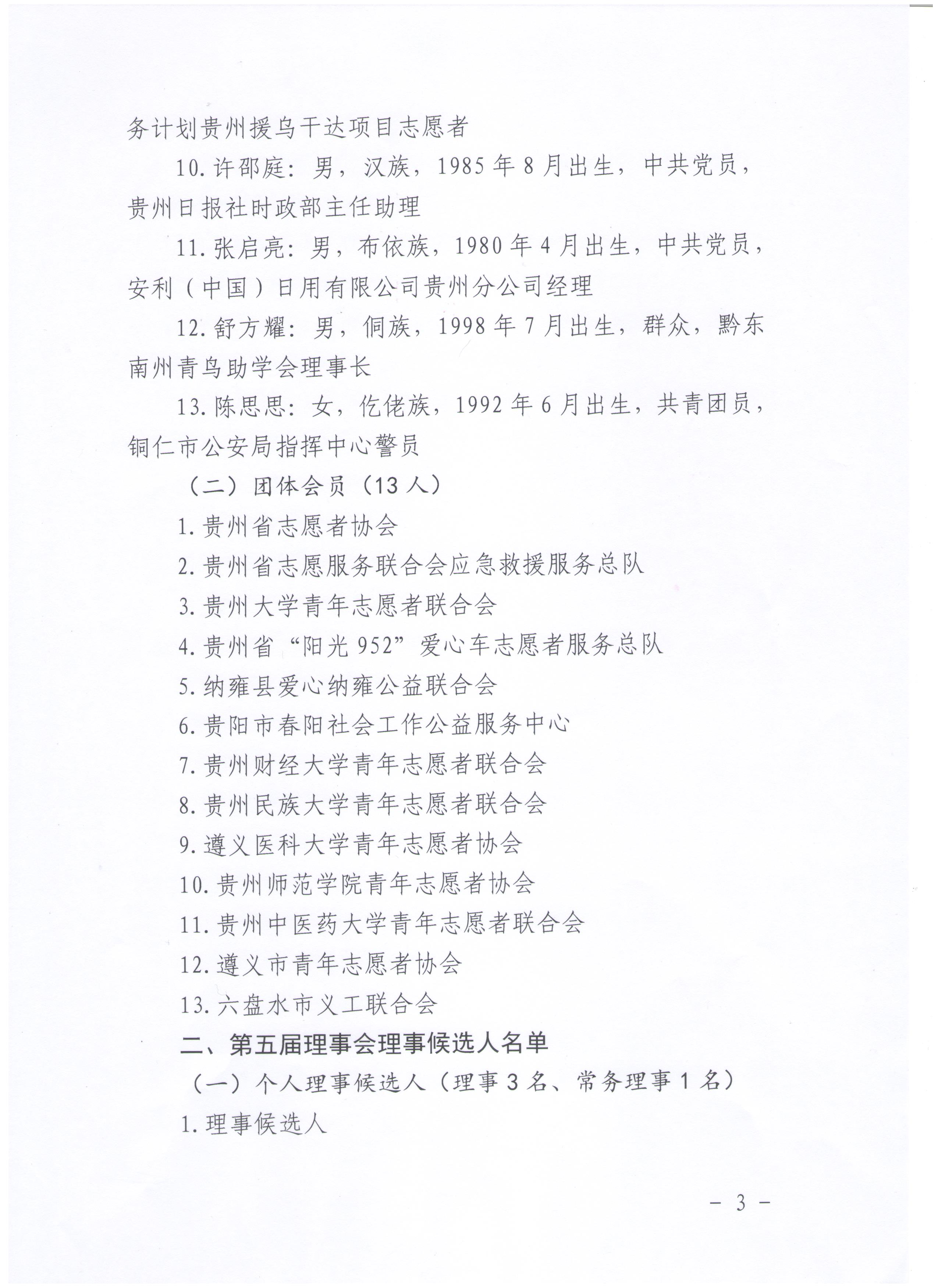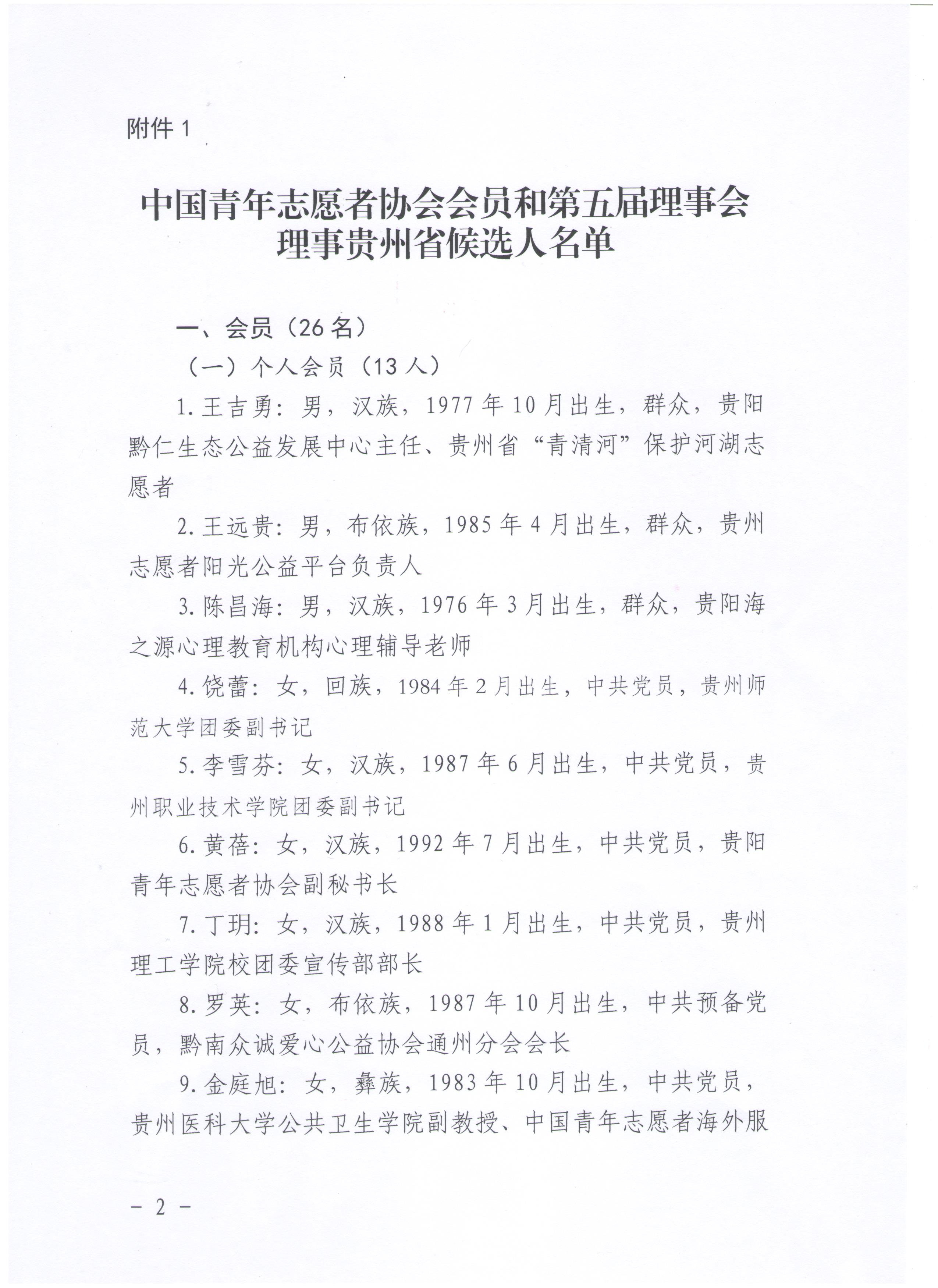 中国青年志愿者协会会员和第五届理事会理事贵州省候选人考察公示