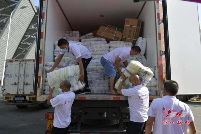 ——“甜甜榕江,驰援贵大”。9月7日下午,榕江县向德赢vwin体育官网登录捐赠了大白菜、冬瓜、茄子、老南瓜、大白菜、冬瓜、榕江特色小香鸡、500件矿泉水、2万个口罩等12吨抗疫物资。