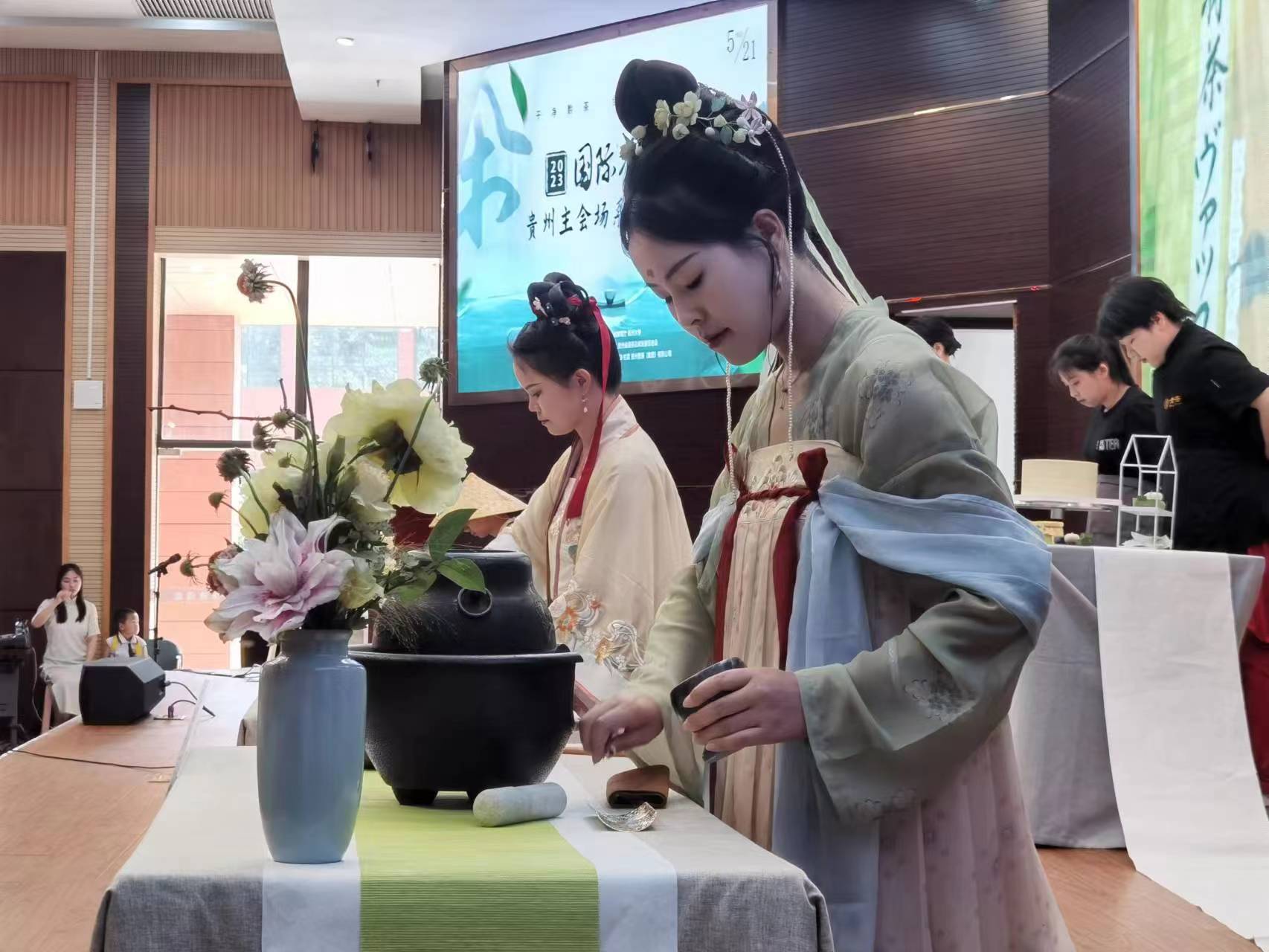 现场的表演将传统与创新相结合,为四溢茶香点缀青春色彩。一群来自贵阳十六中的初中生身着汉服,用中英双语吟诵《茶经》。贵茶集团与贵大茶学院联合创作表演,展示抹茶技艺的前世今生,展现贵州茶产业科技创新的成果。来自省茶文化研究会、省绿茶品牌发展促进会工作人员围绕“贵州冲泡”进行了情景剧表演,对“如何泡好一杯贵州茶”作了生动展现。“黔中桃李可寻访。采茶人自忙……”民谣歌手将黄庭坚的《阮郎归》吟唱,将宋代贵州村民山上采茶、加工茶、饮茶的生动场景用歌声重现。