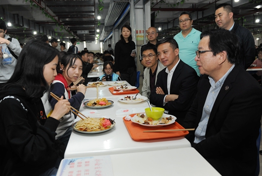 During the meal, Li Jianjun had a nice conversation with students. In addition to asking about their birthplace and eating habits, he asked for their opinion on campus facilities, the dinning environment, price of meals, and taste of the food.