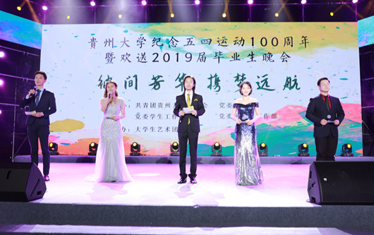 On May 14th, GZU held a 2019 graduation evening, themed "Beautiful Youth, Successful Voyage," commemorating the 100th anniversary of the May Fourth Movement in the East Campus gymnasium. A number of GZU leaders, including Li Jianjun, Luo Changjiang, Linghu Caitao and Tang Benwen, attended the party and watched the ceremonial programs together with more than 2,000 students and faculty members.