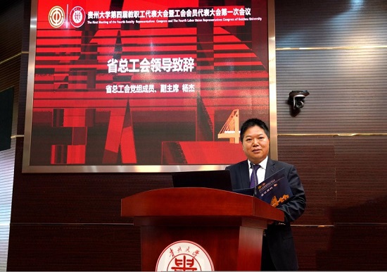 In his keynote speech, Yang Jie acknowledged the Guizhou University union for its arduous and effective efforts in engaging faculty and staff in managing schools affairs in a democratic fashion. Following the recent guidelines from both the university’s Party Committee and Guizhou Education Union, the GZU union has prioritized tasks based on the central missions of the university and has provided the best support services to its faculty and staff. These efforts have helped motivate teachers to utilize their skills to the fullest potential. He then spoke highly of the university’s Party Committee and administrative sectors for their continuous support for the GZU union. In terms of the GZU union’s prioritized tasks, he suggested the following: (a) take a concrete political position; (b) closely review the guidelines; (c) focus on fulfilling Guizhou University’s central missions; (d) consider the best interests of faculty and staff; (e) stay committed to advancing reform and innovation; and (f) respect model workers and carry forward their spirit, honor the value of work, and champion the pursuit of fine workmanship.