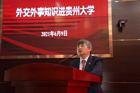On June 9, the activity titled "Promoting Education in Diplomacy and Foreign Affairs in Colleges and Universities" was held at Guizhou University. Ambassador Luo Linquan, Vice President of China Public Diplomacy Association, Counselor Liu Wei of the Policy Department of the Ministry of Foreign Affairs, and Li Xiaomei, Special Representative for Human Rights Affairs of the Ministry of Foreign Affairs, gave phenomenal lectures on diplomacy to teachers and students on the West Campus.
