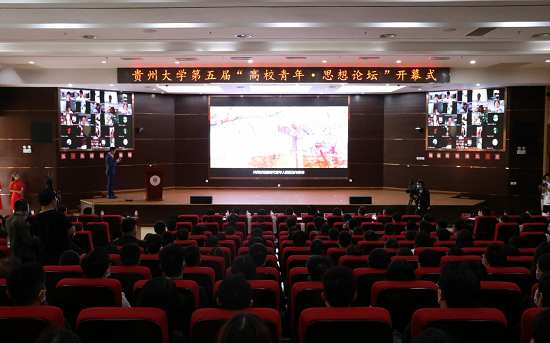 On May 9, the fifth Guizhou University Youth Thought Forum titled “a Century's Education with the Focus on Morals and Virtues, a Decade's Gratitude and Endeavors” was held in Xianzheng Building on the west campus. The timing marks the 10th anniversary of President Xi Jinping’s inspection of Guizhou University. Present at the forum were Qi Si, deputy director of the Provincial Department of Education; Ding Yi, deputy secretary of the CPC Youth League; Li Jianjun, Linghu Caitao, Yang Song, and Zhang Dali, top leaders from Guizhou University; Li Xinchang, member of the CPC committee and minister of the Organization Department of the university; and Zhuo Yong, member of the CPC committee and minister of United Front Work Department of the university. Student representatives and CPC members from relevant departments of the university were also present. In the meantime, student representatives from some 100 colleges and universities attended the event virtually via Cloud Forum.
