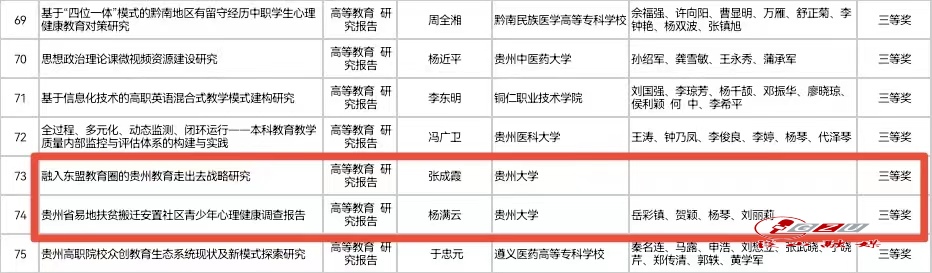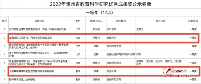 In the list released, a total of 149 achievements made in the period 2017-2021 were honored with the awards, including 17 first prizes, 50 second prizes, and 82 third prizes. The Awards aim to promote the development of educational science research in Guizhou Province and further enhance the enthusiasm and creativity of the educators in light with Xi Jinping Thought on Socialism with Chinese Characteristics for a New Era and the spirit of the 19th CPC National Congress.