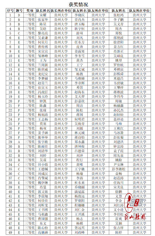 Recently, GZU won a number of awards in the 19th Mathematical Modelling Competition and the 4th Artificial Intelligence Competition.