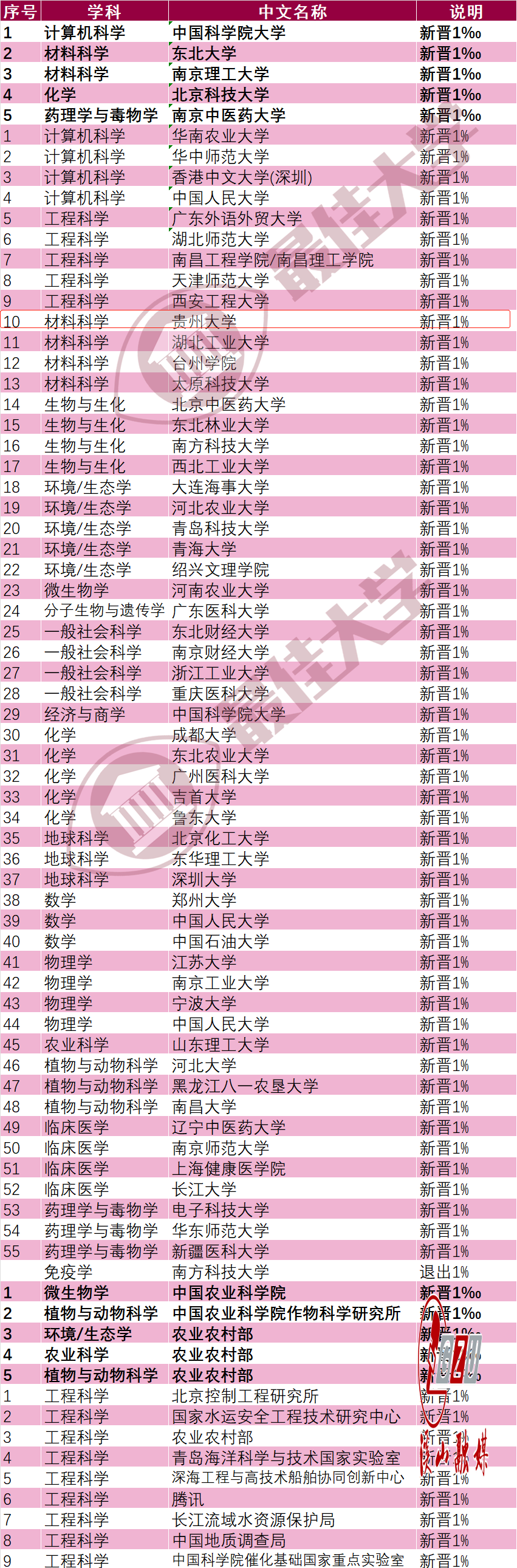 According to the statistics, the number of Top 1% disciplines increased by 589 globally, and there were altogether 2054 Top 1% disciplines in universities in Mainland China (54 newly added), among which 243 were Top 1 ‰ disciplines (5 newly added). Other institutions own 772 disciplines in the Top 1% (69 newly added), including 54 disciplines in the Top 1 ‰ (5 newly added).