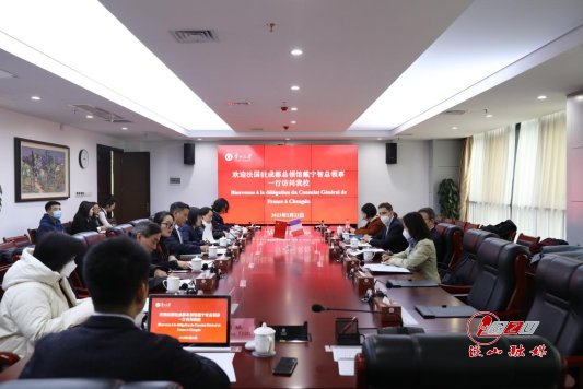 On Feb. 23, Dai Ningzhi,Consul General of the Consulate General of France in Chengdu and his delegation visited GZU. Zhang Dalin, vice president of Guizhou University attended the meeting. The participants also included leaders from the Office of International Exchange and Cooperation, College of Foreign Languages, College of Tourism and Cultural Industries, College of Computer Science and Technology, College of International Education and teacher representatives.