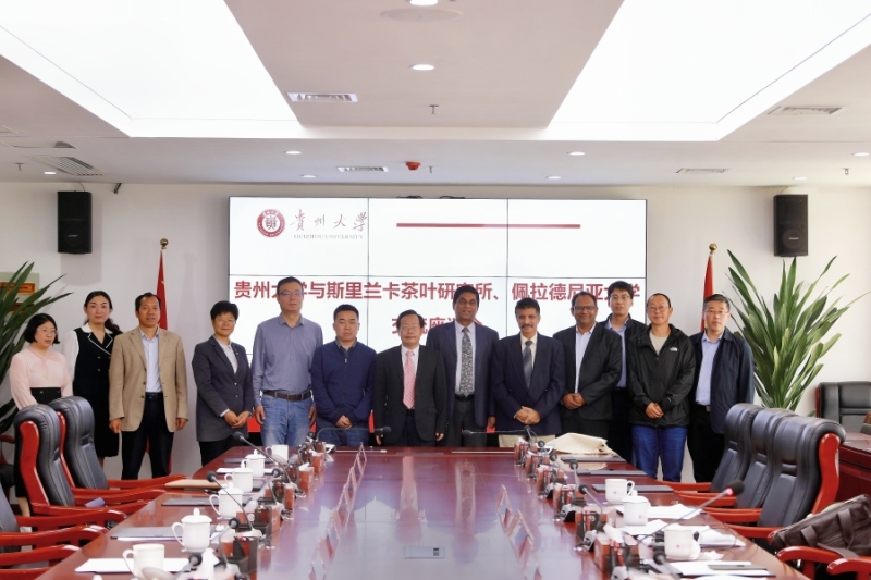 On May 21, on the occasion of International Tea Day, Dr. Keerthi Mohotti, Director of the Tea Research Institute of Sri Lanka, and Professor Sarath Kodithuwakku, Dean of the College of Agriculture at the University of Peradeniya, paid a visit to Guizhou University. The following day, a symposium was held with Zhou Shaoqi, Vice President of GZU, heads of relevant departments, and professors from the State Key Laboratory of Green Pesticides in attendance. The primary focus of the symposium was to deliberate on the establishment of a China-Sri Lanka joint laboratory focused on green pest control technologies for tea plant under the "Belt and Road" initiative. Additionally, discussions were held regarding opportunities for academic and student exchanges.
