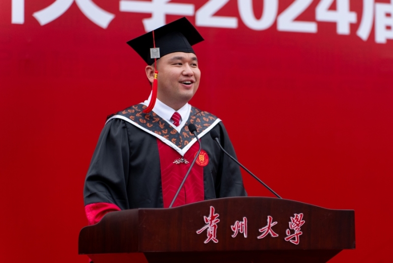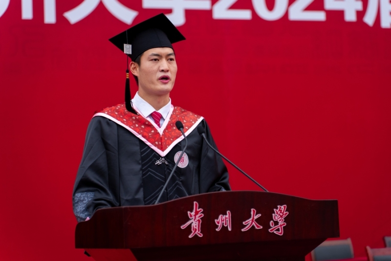 Zhang Qingke, an undergraduate in Physical Education, and Gao Lei, a doctoral graduate in Geochemistry, pledged to uphold GZU’s motto “Illustrious Virtue, Utmost Goodness, Extensive Learning, and Earnest Practice” and contribute to national rejuvenation.