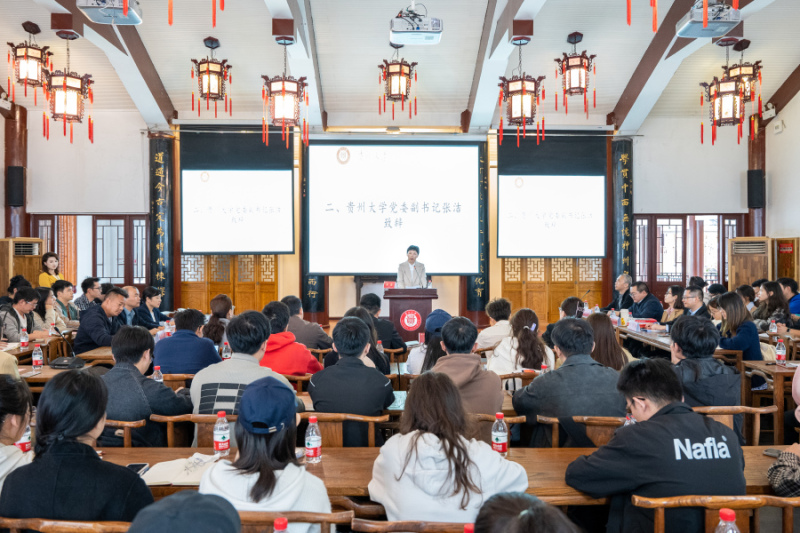 “Young people are the future of our nation and the world”. On the afternoon of October 22, GZU hosted a reading session at its Chinese Culture Academy, themed “Reflecting on the Growth of Chinese Youth Amid Global Changes”, under the framework of the “New Era Initiative of Fostering Virtue Through Education”. Zhang Jie, Deputy Secretary of the CPC GZU Committee, attended and delivered a speech. Hu Dan, a host from Guizhou Broadcasting and Television Station, presided over the event.