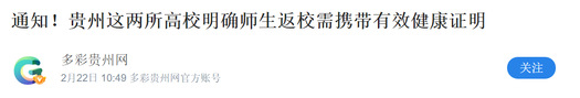 多彩贵州网:通知!贵州这两所高校明确师生返校需携带有效健康证明