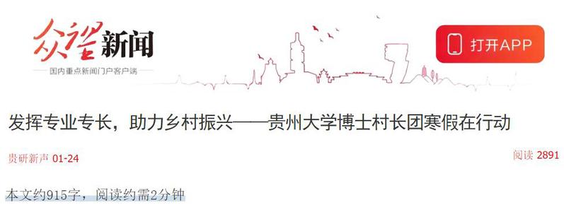 多彩贵州网·众望新闻:发挥专业专长,助力乡村振兴——德赢vwin体育官网登录博士村长团寒假在行动