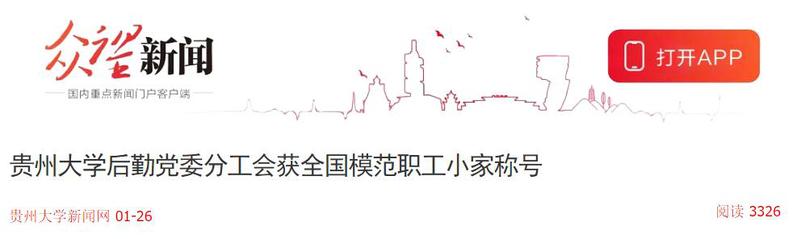多彩贵州网·众望新闻:德赢vwin体育官网登录后勤党委分工会获全国模范职工小家称号